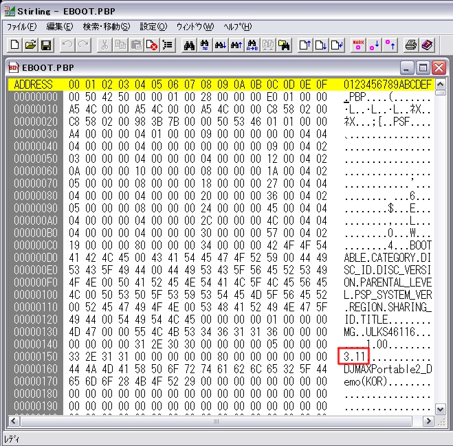 赤線で囲った部分の数値を弄ってプレイ可能なデータに書き換えるわけです。