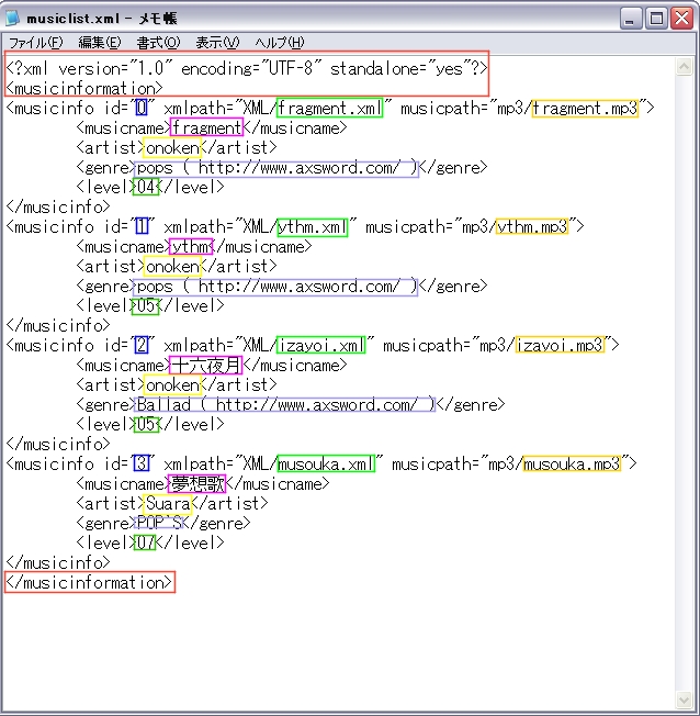手始めに入っているmusiclist.xmlを開いてみましょう